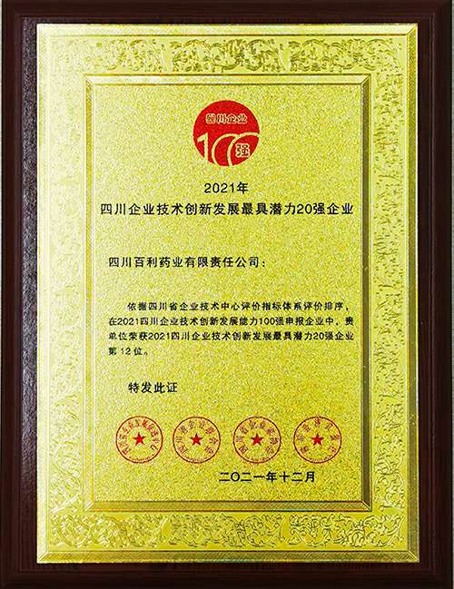 公司是国家高新技术企业,国家知识产权优势企业,拥有四川省省级企业技术中心,是四川省企业技术创新发展能力百强,累积承担国家科技重大专项“重大新药创制”9项,“国家重点研发计划”1项、“中国制造2025”工业转型升级项目1项,承担省级重大科技专项、科技支撑项目等省部级项目13项,公司技术和研发能力得到国家与省部级政府部门、科研机构等单位的认可,是中国儿童药物研发与产业化联盟成员单位。